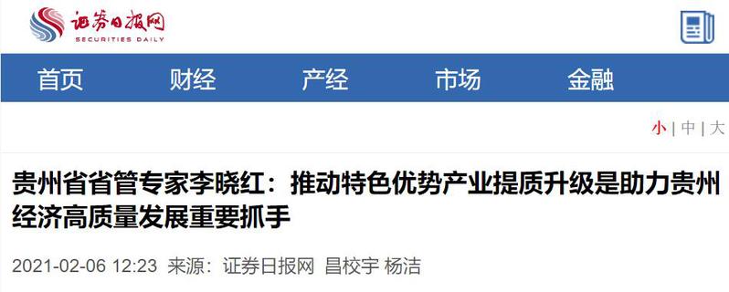 证券日报网:贵州省省管专家李晓红:推动特色优势产业提质升级是助力贵州经济高质量发展重要抓手