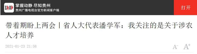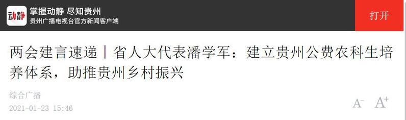 动静(贵州广播电视台官方新闻客户端):两会建言速递︱省人大代表潘学军:建立贵州公费农科生培养体系,助推贵州乡村振兴