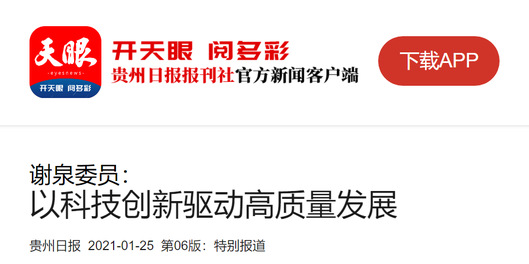 天眼(贵州日报当代融媒体集团新闻客户端):谢泉委员:以科技创新驱动高质量发展