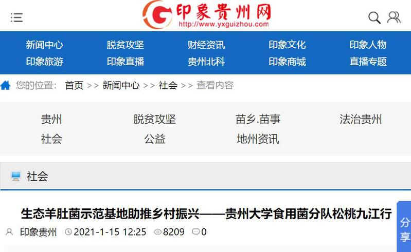 印象贵州网:生态羊肚菌示范基地助推乡村振兴——mg4355vip线路主页检测食用菌分队松桃九江行