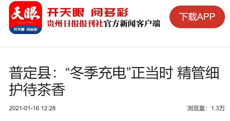 天眼(贵州日报当代融媒体集团新闻客户端):普定县:“冬季充电”正当时 精管细护待茶香