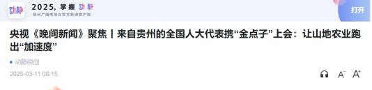 【两会上的贵大声音】:中央电视台《晚间新闻》:【观两会·代表委员议国是】发展农业新质生产力 加快农业强国建设