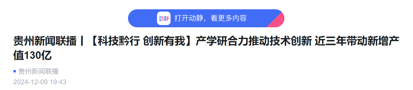 贵州广播电视台:贵州新闻联播丨【科技黔行 创新有我】产学研合力推动技术创新 近三年带动新增产值130亿