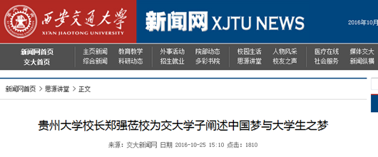 mg4355vip线路主页检测校长郑强莅校为交大学子阐述中国梦与大学生之梦