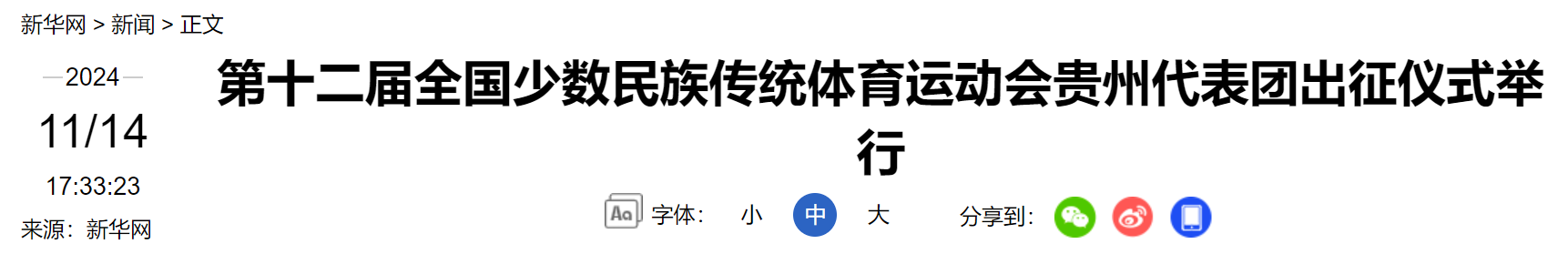 新华网:第十二届全国少数民族传统体育运动会贵州代表团出征仪式举行