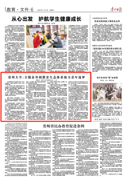 贵州日报:mg4355vip线路主页检测:全链条双创教育生态体系助力青年逐梦