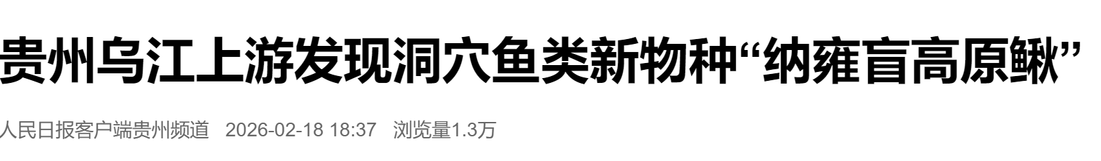 人民日报客户端:贵州乌江上游发现洞穴鱼类新物种“纳雍盲高原鳅”